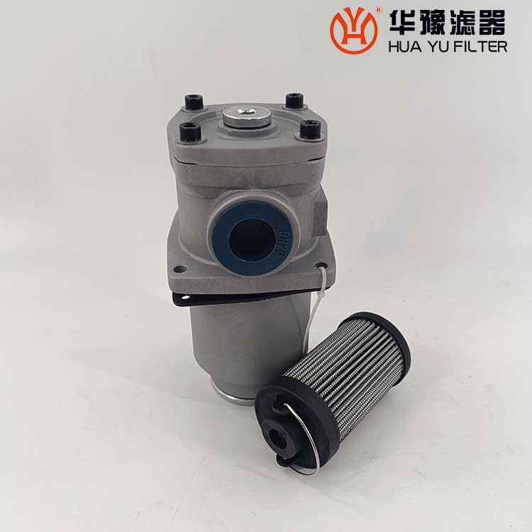 這種過濾器設有濾芯污染堵塞發(fā)訊器和油路旁通閥,當回油壓力達到0.35MPa時,發(fā)訊器發(fā)出開關信號或報警,還可直接從發(fā)訊器的表盤上讀出回油壓力值,以提示操作人員及時更換濾芯,保證系統(tǒng)油液的清潔度。更換濾芯只需旋開過濾器端蓋即可。當回油壓力上升至0.4MPa時,過濾器內的旁通閥便自動卸荷,以避免回油壓力過高造成整個系統(tǒng)工作
