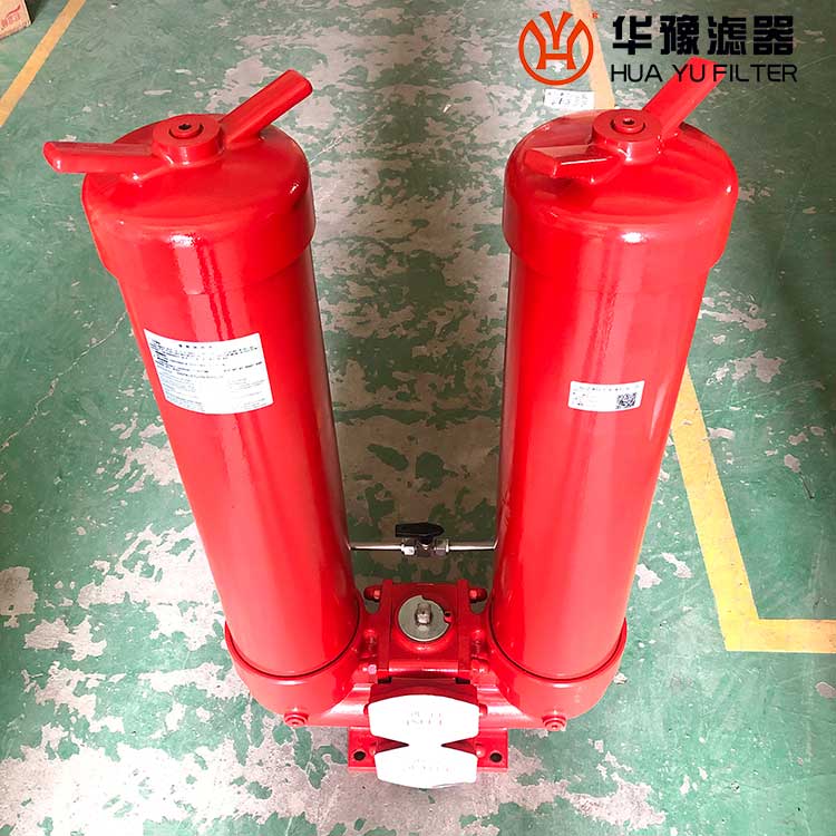 它的工作特點是當一只過濾器濾芯堵塞需要更換時,不需要停止主機工作,只要打開壓力平衡并轉動換向閥,另一只過濾器即可參加工作,然后更換已堵塞的濾芯。