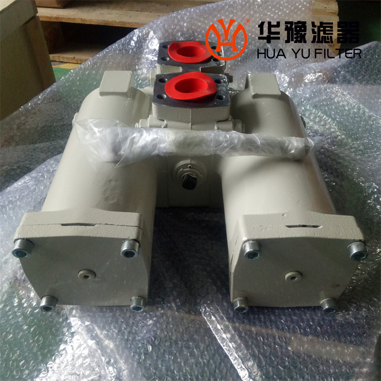 工作時(shí)一只濾筒通油,另一只濾筒不通油備用。當(dāng)工作濾筒的濾芯堵塞至壓差發(fā)訊器壓力指示值為0.5MPa時(shí),發(fā)訊器發(fā)訊,此時(shí)應(yīng)及時(shí)打開壓力平衡閥、轉(zhuǎn)動(dòng)換向閥啟用備用濾筒(換向閥轉(zhuǎn)動(dòng)到位后關(guān)閉壓力平衡閥)。再只需旋開螺塞放完被堵塞濾筒內(nèi)的油液,再旋下筒體,就可更換已堵塞的濾芯。如因故未能及時(shí)切換換向閥啟用備用濾筒,導(dǎo)致壓差持續(xù)上升至旁通閥開啟壓力0.6MPa時(shí),旁通閥會(huì)自動(dòng)開啟,以避免由于壓力繼續(xù)上升,濾芯破裂造成再污染。但此時(shí)油液未經(jīng)過(guò)濾對(duì)系統(tǒng)安全造成極大危害,應(yīng)盡可能避免旁通閥被開啟。