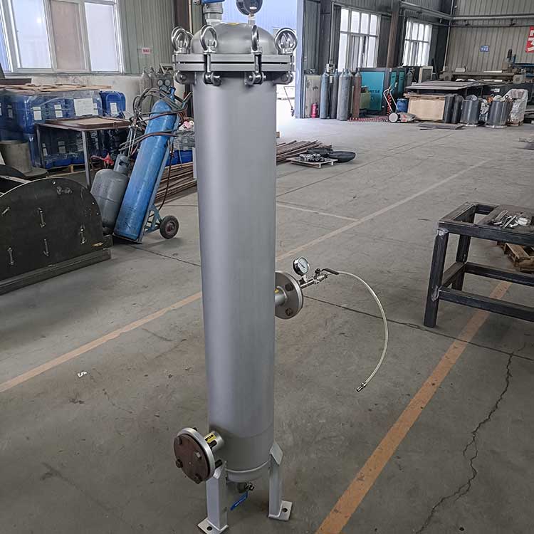 精密過濾裝置(也稱作保安過濾器)大都采用不銹鋼做外殼,內部裝過濾濾芯(例如PP棉),主要用在多介質預處理過濾之后,反滲透、超濾等膜過濾設備之前。用來濾除經多介質過濾后的