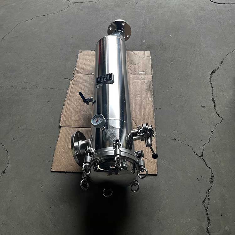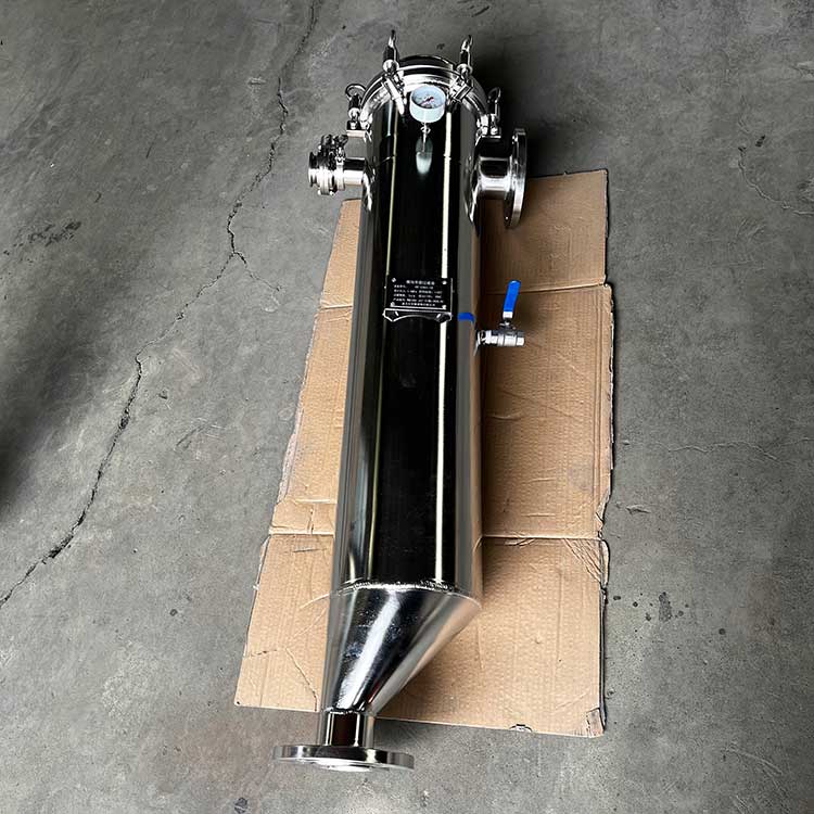 袋式過濾器一種結構新穎、體積小、操作簡便靈活、節能、高效、密閉工作、適用性強的多用途過濾設備。袋式過濾器是一種新型的過濾系統。袋式過濾器內部由金屬網籃支撐濾袋,液體由入口流進,經濾袋過濾后從出口流出,雜質攔截在濾袋中,更換濾袋后可繼續使用。
